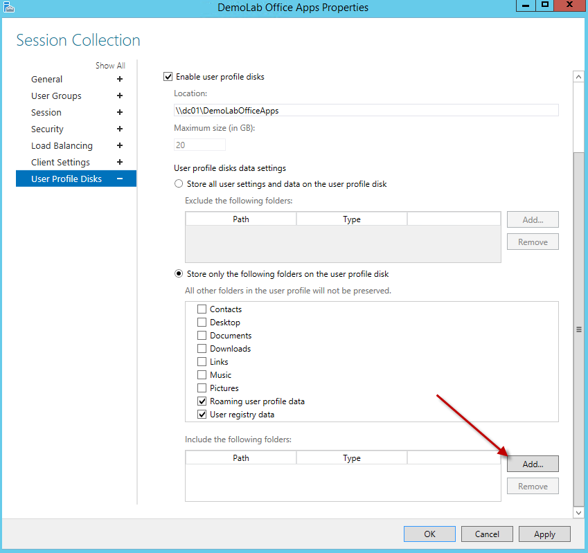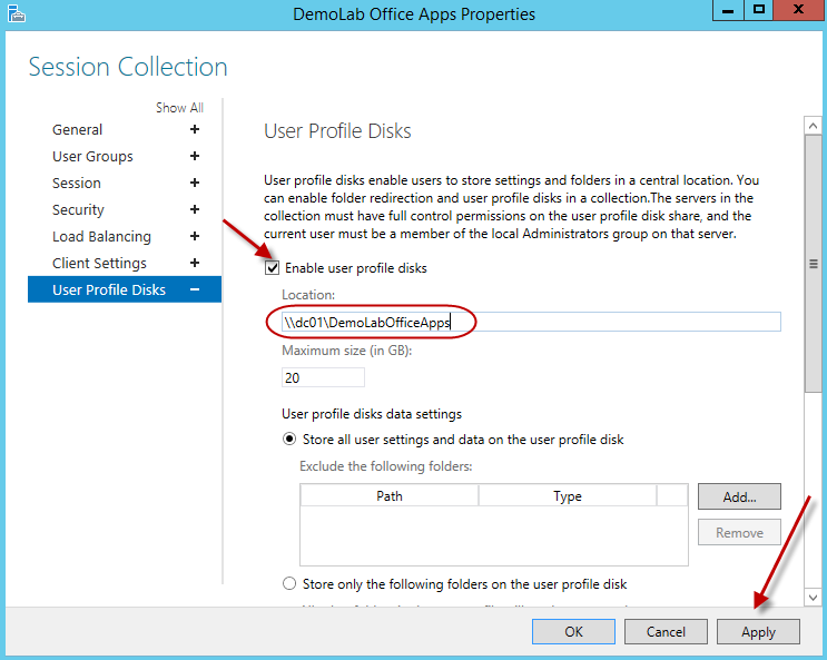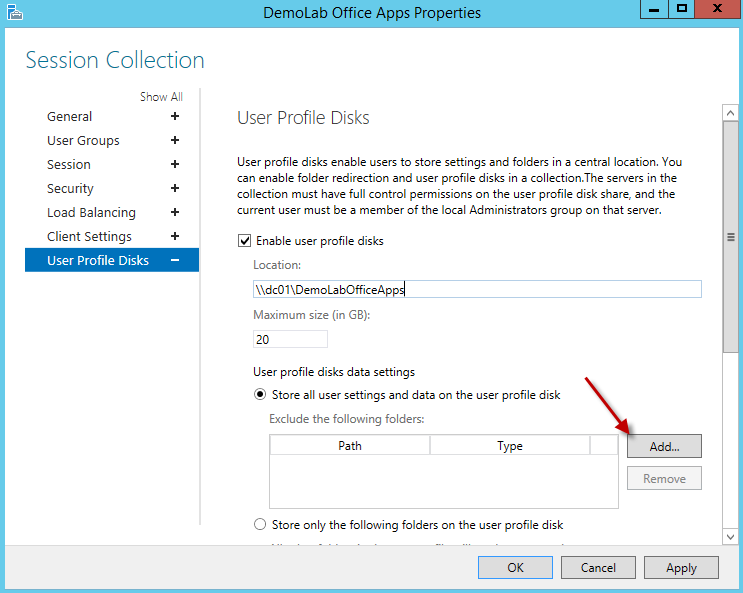 When removing items from the UPD such as desktop etc etc, upon clicking the apply button I get the error “User Profile Disk location is already in use” Any ideas? I only want the appdata and registry settings. Thanks.