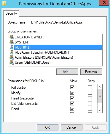 As for your second question on moving the UPD location, will you be copying everyone’s UPD to the new location? This is something which I have not tested myself so unfortunately I do not have the steps to accomplish this. I guess as long as the RDSH servers of the collection have the correct the permissions on the new share, theoretically it should work. The permissions will be applied when you change the location on the properties of the collection. If you do try this out, please let us know the results.