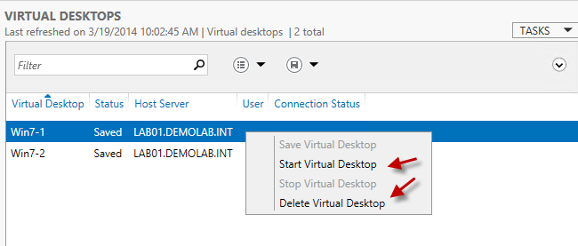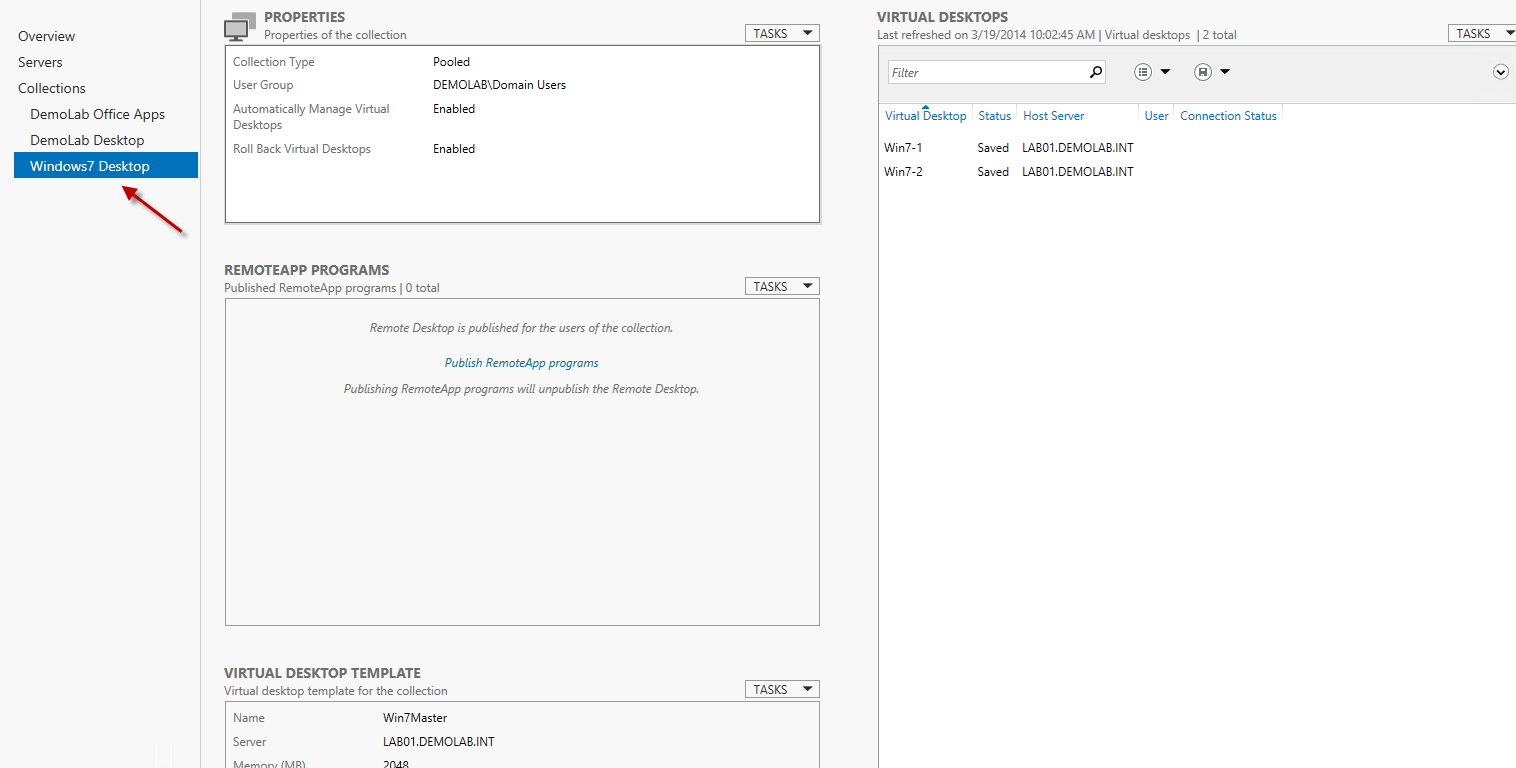 Now that we have our Virtual Desktop Collection created, let’s look at the environment and see what actually happened.