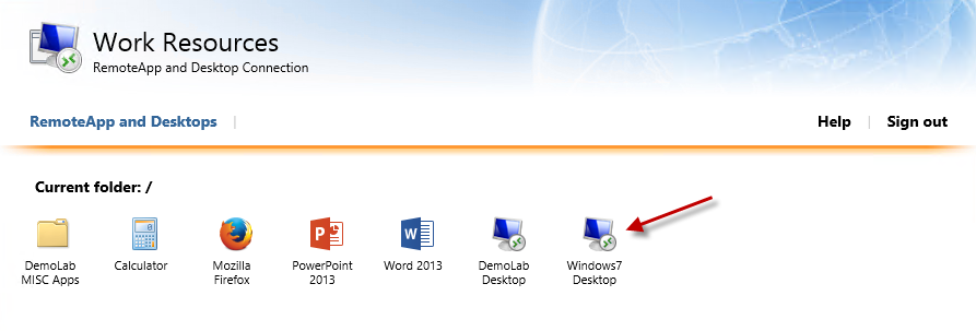 And if we log into RD Web Access, we will see our new Windows 7 Virtual Pooled Desktop.